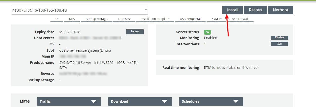 1. After your server is set up and you logged in, there will be a notification button telling you to click on “install”