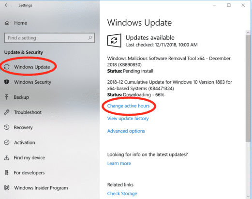 Change active hours helps you delay the update for just a few hours to make sure the installation process doesn’t start while you are at work.
