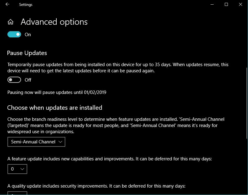 Here, you can choose to either defer updates for as many as 365 days OR to delay the process until an update is more stable.