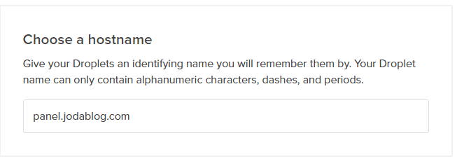 if you are going to use digitalocean, when creating your drop either with centos 7 or ubuntu 14.04, 12.04 make sure you configure your hostname like so, this will help you very well.