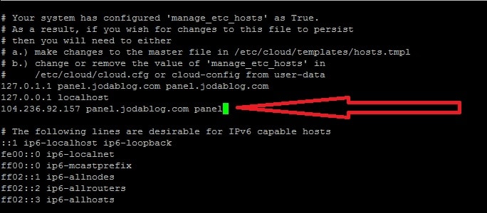 Go to the next line and add the hostname and IP to the /etc/hosts file which will enable you to access the backend of plesk control panel. Plesk requires this so be careful when doing it if not you won’t be able to access the backend. Do it like so